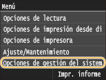 <Opciones de gestión del sistema>