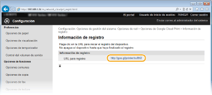 Haga clic en el vínculo de la URL que aparece en [URL para registro].