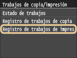 Si <Mostrar registro de trabajos> está establecido en <Off>, no podrá consultar el registro de trabajos de impresión. Mostrar registro de trabajos