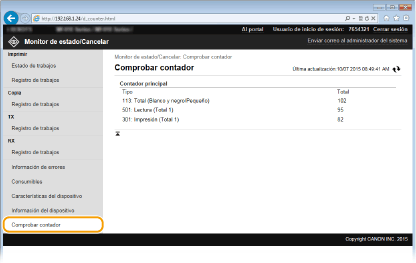 Se muestra el número total de páginas impresas con las funciones de copia, impresión y fax.