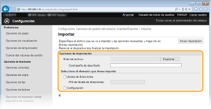 Introduzca la contraseña establecida cuando se exportó la configuración.