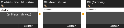![]() El ID y el PIN del administrador del sistema son de forma predeterminada "7654321". Se recomienda cambiar este valor para una mayor seguridad.