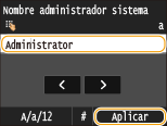 Introduzca hasta 32 caracteres para el nombre del administrador del sistema, y pulse <Aplicar>.
