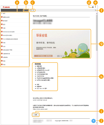 单击此项显示如何阅读电子手册、如何进行搜索以及其他各种信息。