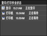时,将显示一个画面,可供您检查正在打印、发送或接收的文档的状态,以及本机的状态(墨粉盒中的剩余量等)和本机 IP 地址等网络设置。