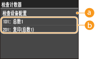) 时,显示 <检查计数器> 画面。在此画面,可查看打印件的计数器数值,以及本机的序列号和本机配置。