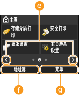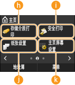 时显示主页画面。使用此画面可以指定设置和注册功能。