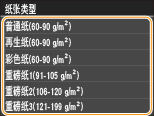 如果装入纸张时未显示以上画面如果一直将相同的纸张装入多功能托盘,可以通过将纸张尺寸和类型注册为默认设置来跳过纸张设置操作。不过,注册了默认设置时,将不会显示以上画面。若要显示此画面,请选择 <装入纸张时指定>(为多功能托盘注册默认的纸张设置)。