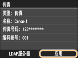 ![]() 如果在轻触 <开始检索> 时出现认证画面,请输入在 LDAP 服务器中注册的本机用户名和密码,然后轻触 <应用>。 注册 LDAP 服务器