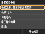 姓名、传真号码、电子邮件地址、组织名称及组织单位均可用作搜索接收方的条件。