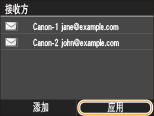 重复步骤 7 至 9,直至注册了所有要注册的接收方,然后轻触 <应用>。