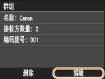 可以将多个接收方合并到群组中。对于一个群组,最多可以注册 299 个接收方(对于电子邮件为 100 个接收方)。注册了群组后,可以编辑或删除接收方。