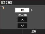 或数字键输入复印倍率,然后轻触 <应用>。可以以 1% 为增量将复印倍率设置为 25% 至 400% 之间。