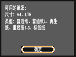确认本机中已装入画面上所显示尺寸和类型的纸张,然后轻触 <确定>。