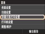 列出所有关于存储介质打印的设置,并有简短说明。默认设置用十字符(
