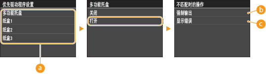 如果打印机驱动程序的设置与选择 <打开> 时装入的纸张尺寸与类型不匹配时,可能会发生卡纸或打印错误。