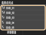 安全设置如果通过选择无线路由器设置无线连接,则 WEP 认证方法设置为 <开放系统> 或 WPA/WPA2 加密方法设置为 <自动>(AES-CCMP 或 TKIP)。如果想对 WEP 认证选择 <共享密钥> 或对 WPA/WPA2 加密选择 <AES-CCMP>,则需要通过手动输入方法设置连接(通过指定详细设置来设置连接)。
