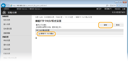 选择 [使用FTP PASV模式] 复选框,然后单击 [确定]。