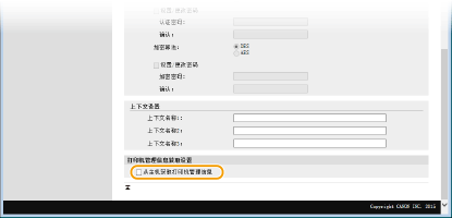 专用团体是预设团体,仅针对使用佳能软件(如 iW Management Console)的管理员。选择此复选框并指定 [MIB访问权限] 可使用专用团体。如果无需使用专用团体,请取消选择此复选框。