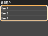 如果内存中保存了两个或更多用户的加密文档,在显示 <选择文件> 画面以前会显示 <选择用户> 画面。选择用户名。