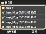 ![]() ![]() 如果在轻触 <所有项目> 前选择了文件,您将只能选择相同格式的文件。