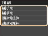 ![]() ![]() 当选择 <日期/时间(升序)> 或 <日期/时间(降序)> 时,文件将根据文件的修改日期和时间进行排序。