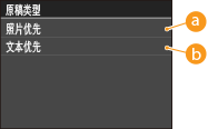 可以根据要打印的图像选择原稿类型。选择 <照片优先> 或 <文本优先>。