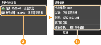 ![]() <发送作业状态>显示正在发送或等待处理文档的列表。