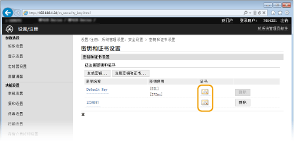单击 [密钥和证书设置] 验证密钥对,或单击 [CA证书设置] 验证 CA 证书。