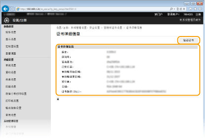 在此画面上可以查看证书详细信息。