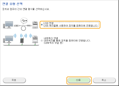 [USB 연결]을 선택하고 [다음]을 클릭합니다.