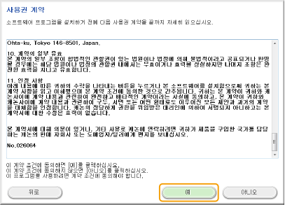 사용권 계약을 읽고 동의하면 [예]를 클릭합니다.