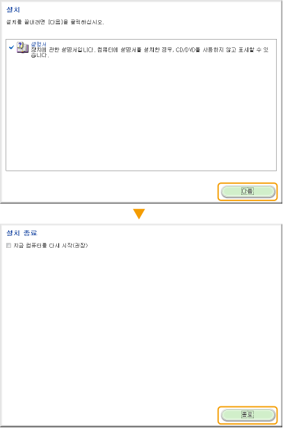 기기와 함께 제공된 DVD-ROM을 사용하여 전자설명서를 컴퓨터에 설치합니다.