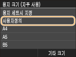 기본 용지 설정이 등록된 후에는 용지를 넣을 때 용지 설정 화면이 표시되지 않으며 항상 동일한 설정이 사용됩니다. 용지 설정을 변경하지 않고 크기나 종류가 다른 용지를 넣을 경우 제대로 인쇄되지 않을 수도 있습니다. 이러한 문제를 방지하려면 3단계에서 <용지 세트시 지정>를 선택한 다음 용지를 넣으십시오.