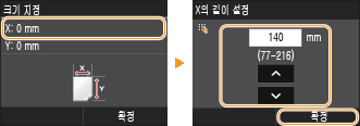 / 또는 숫자 키를 사용하여 <X> 쪽의 길이를 입력하고 <확정>을 누릅니다.![]() |