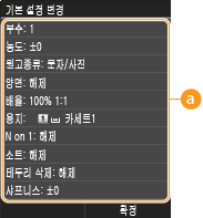 를 누를 때 표시되는 설정입니다. 이러한 기본 설정을 자주 수행하는 작업에 맞게 변경하면 복사할 때마다 동일한 설정을 구성할 필요가 없습니다.