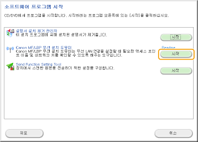[Canon MF/LBP 무선 설치 도우미]에서 [시작]을 클릭합니다.