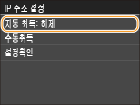 ![]() <설정>이 표시되면, <자동 취득>을 누르고 <프로토콜 선택>과 <자동 IP>를 모두 <해제>로 설정합니다.