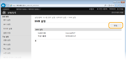 SMB(Server Message Block)는 파일과 프린터 등의 리소스를 네트워크에 연결된 2개 이상의 장치와 공유하기 위한 프로토콜입니다. 본 기기는 SMB를 사용하여 스캔한 문서를 공유 폴더에 저장합니다. 네트워크에 따라 NetBIOS 이름과 작업그룹명을 설정해야 하는 경우도 있습니다.