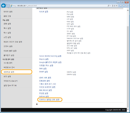 [디바이스 설정값 관리 설정]를 클릭합니다.