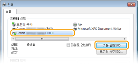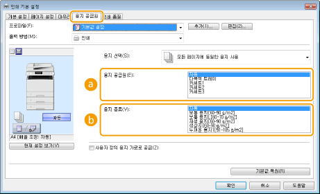 <드라이버 설정 우선 출력>을 <설정>으로 설정하면 기기의 용지 설정에 상관없이 프린터 드라이버에 지정된 용지 공급원에서 인쇄할 수 있습니다. 드라이버 설정 우선 출력