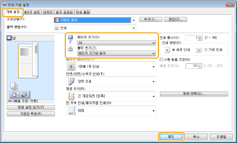 선택한 용지 크기에 따라 최적의 확대/축소 비율을 설정하지 못할 수도 있습니다. 예를 들어, 출력물에 큰 빈 공간이 있거나 문서에서 누락된 부분이 있을 수 있습니다.