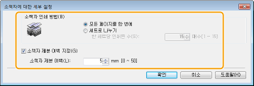 일부 용지 크기 및 종류에서 소책자 인쇄를 사용하지 못할 수도 있습니다. 양면 인쇄에 사용할 수 있는 용지는 소책자 인쇄에도 사용할 수 있습니다. 용지를 참조하십시오.