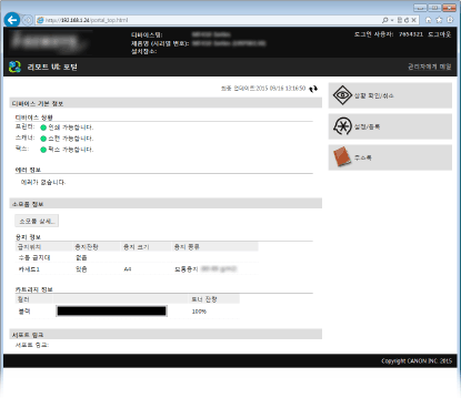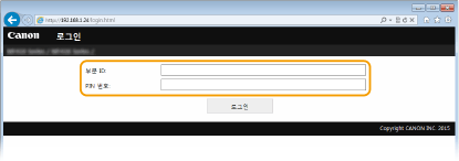 모든 리모트 UI 작업과 설정을 수행할 수 있습니다. 시스템 관리자 ID가 지정된 경우, [시스템 관리자 ID]에 해당 ID를 입력하고 [시스템 관리자 PIN 번호]에 해당 PIN을 입력합니다.