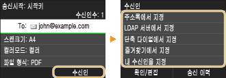 주소록을 사용하는 방법은 주소록에서 지정 을 참조하십시오.