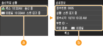 ![]() <송신작업 상황>전송 중이거나 처리 대기 중인 문서 목록을 표시합니다.