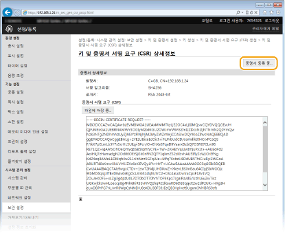 인증서가 등록될 때까지 인증서 서명 요구(CSR)로 생성된 키 페어를 사용할 수 없습니다. 인증 기관이 디지털 인증서를 발행하면 아래 절차에 따라 등록하십시오.