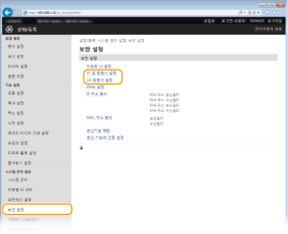 [키 및 증명서 설정] 또는 [CA 증명서 설정]을 클릭합니다.