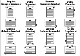 Se si esegue la pinzatura di carta orientata in senso orizzontale, l'orientamento delle immagini e la posizione di pinzatura potrebbero non corrispondere. |