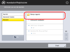 A seconda della personalità della stampante, alcune impostazioni della stampante potrebbero non essere disponibili. Il menu impostazioni rapporto è disponibile solo per la stampante PCL o PS. |